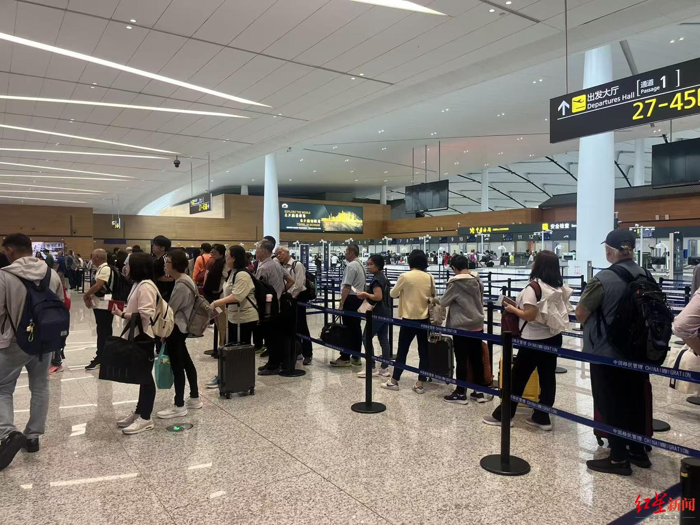 正在排队办理出入境手续的旅客