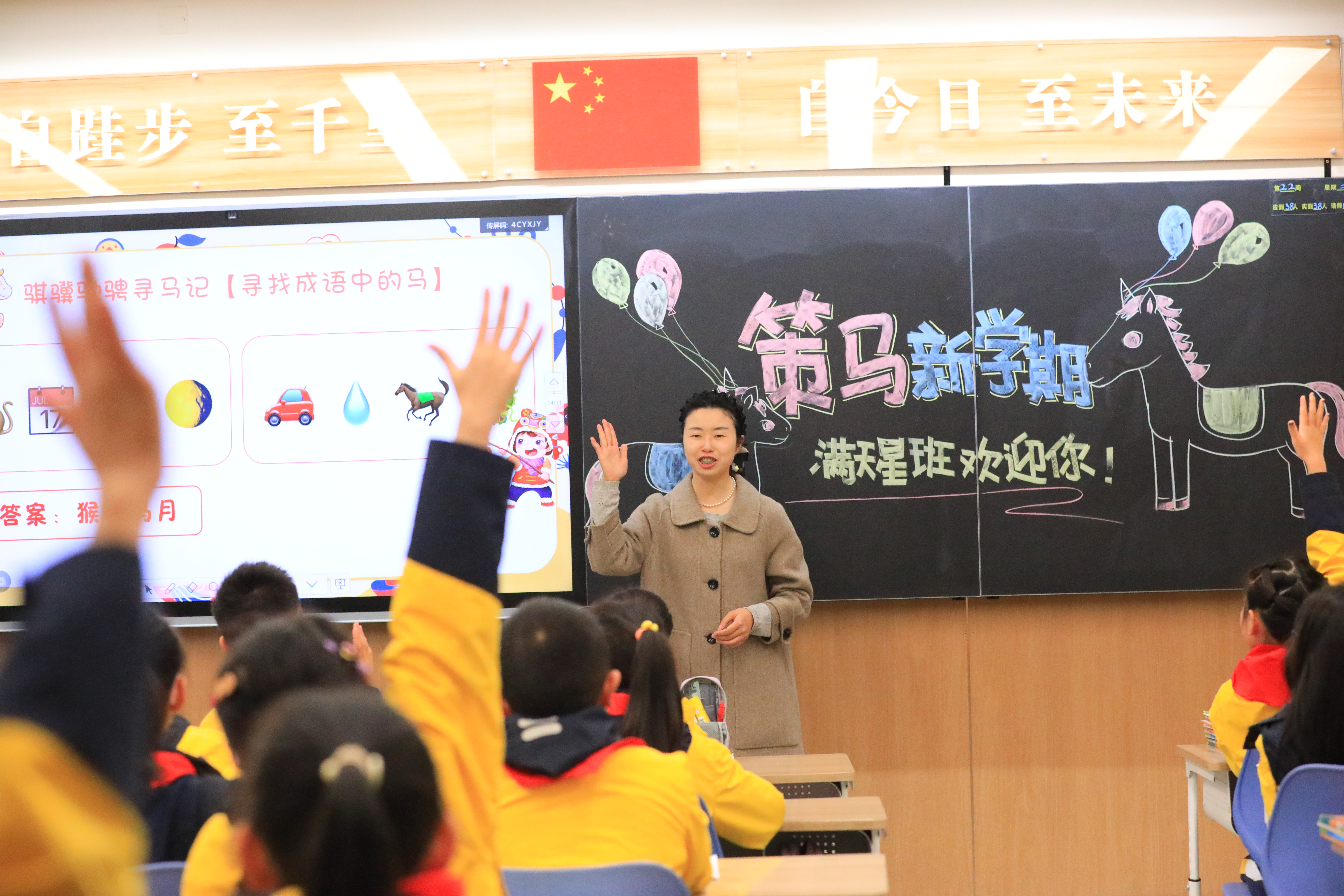 “今年是什么年?同学们知道‘马’字是如何演变而来的吗?”在教室里,老师正通过视频演示,给同学们讲解着“马”字的演变过程,从甲骨文到现代楷书,一堂由“马”字延伸出的班级第一课由此拉开序幕。据了解,为了让孩子们在轻松愉快的氛围中返校,成都天府中学附属小学各班都准备了以“马”为主题的班级特色活动。据相关负责人介绍,以“马”延展到新学期,既是传统文化的生动传承,也是孩子们成长姿态的鲜活写照。