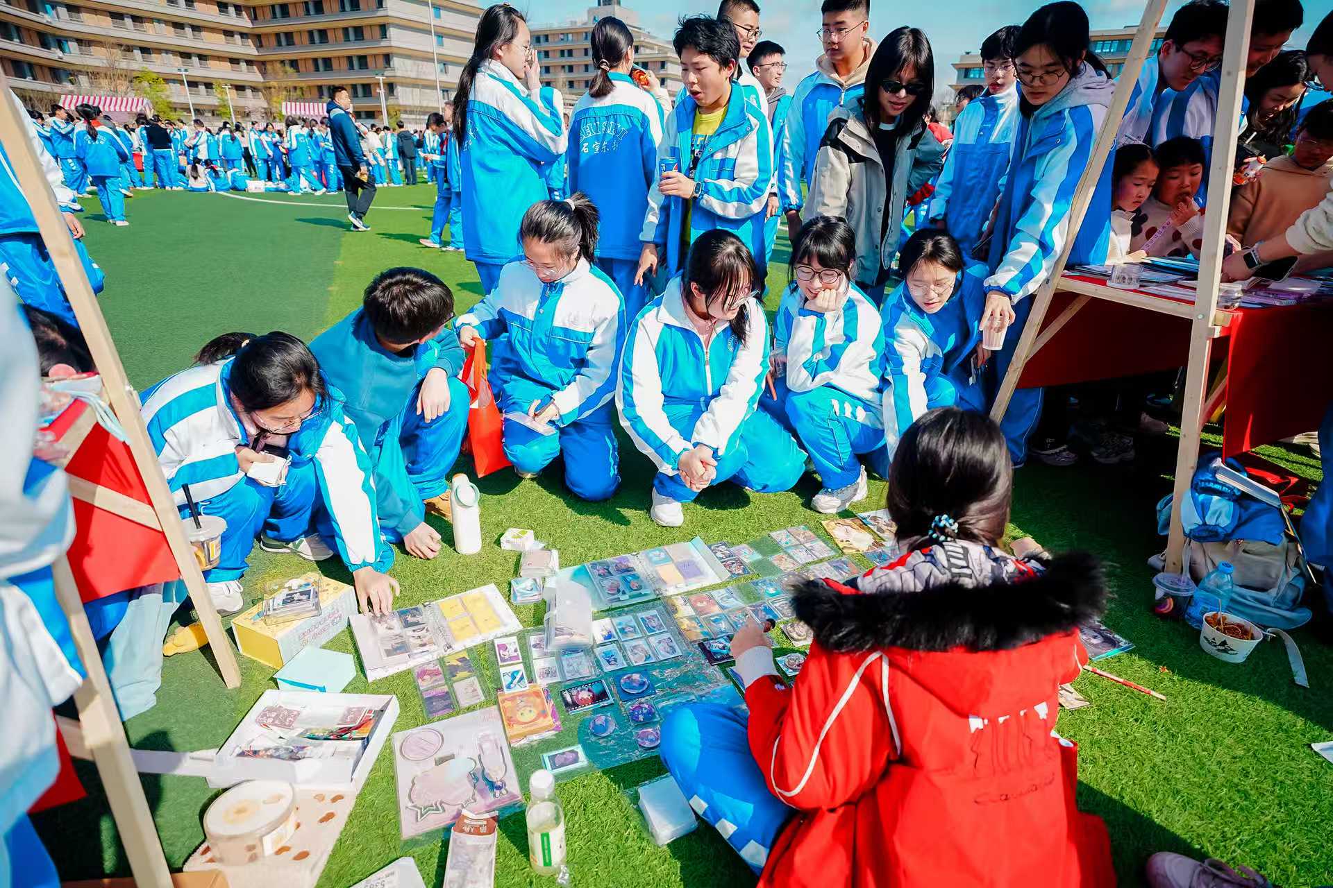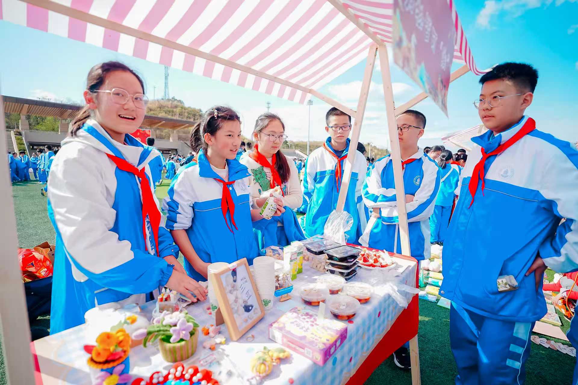 成都石室东部新区实验学校为学生定制了“石东大集”活动。校园内,钵钵鸡、糯米糍、糖葫芦等美食摊位排列整齐,节日氛围拉满。在手工区,学生们制作环保创意作品;书籍交换区里,孩子们围聚一起,讨论假期阅读的书籍。在欢快的集市里,不同学段的学生们在表达与沟通中实现协作能力的提升,课堂之外的学习在真实情境中延伸。