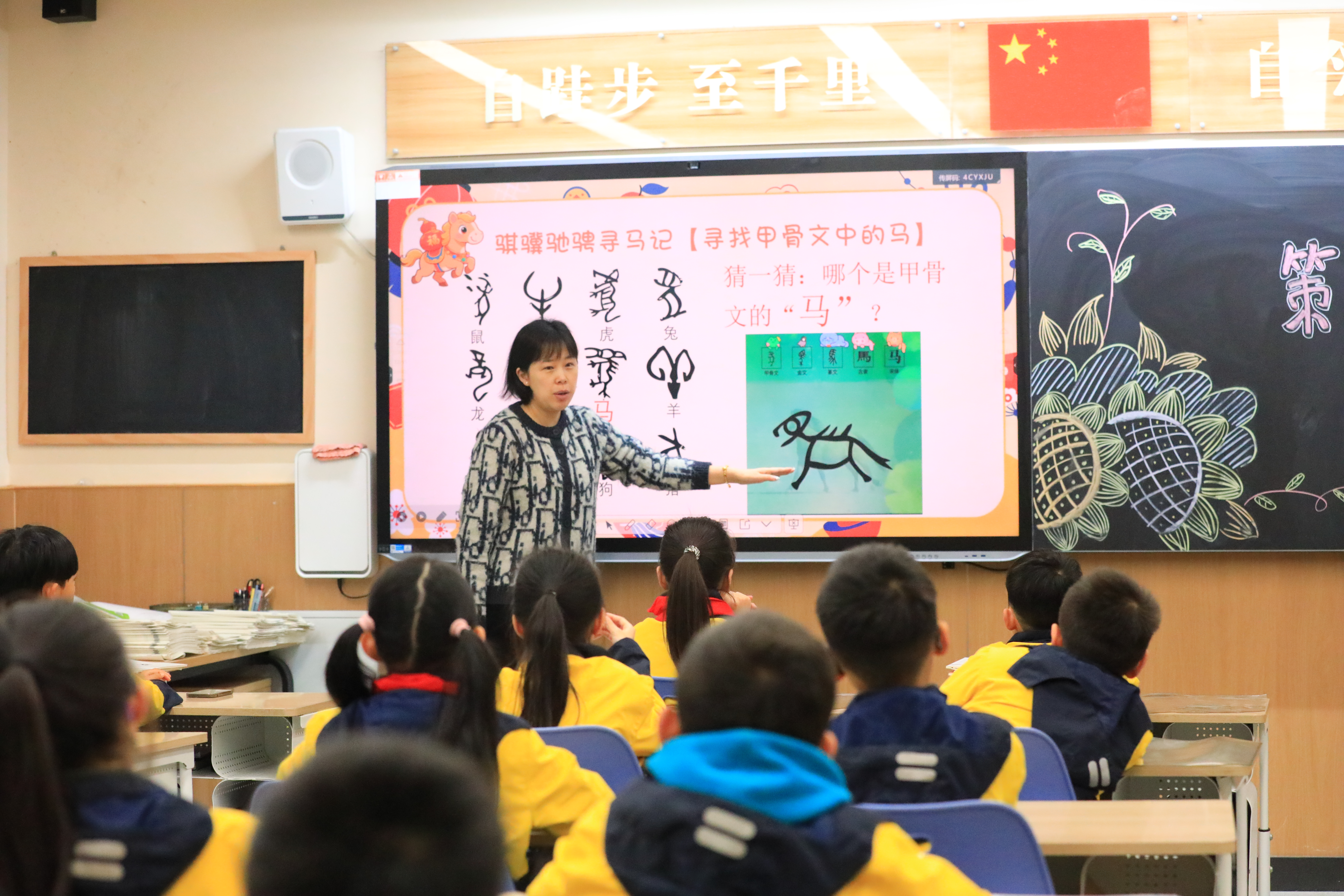 成都天府中学附属小学老师正在给同学们讲解“马”字的演变过程