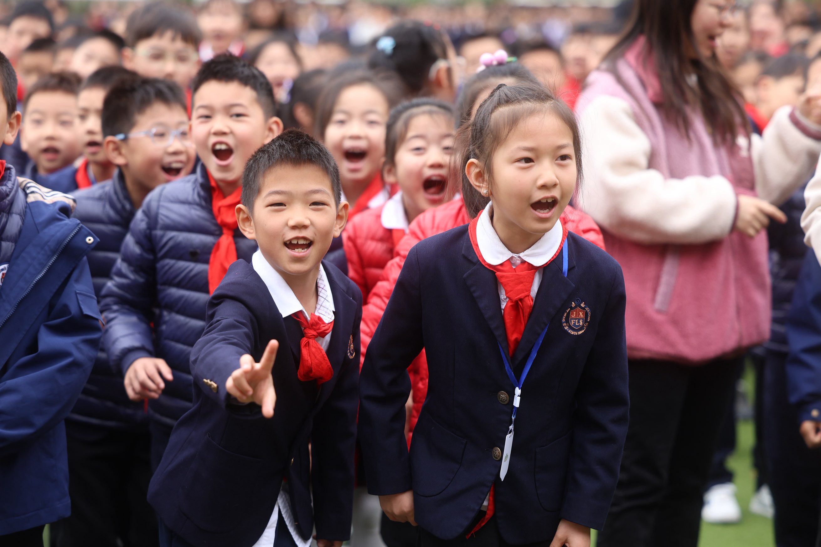 成都建设路小学建业校区的开学典礼以“友盟传善意,童心守初心”为主题,积极响应成华区教育局发起的“华仔友盟”心理健康教育行动计划,向孩子们传递“联结、支持、成长”的友谊理念,引导他们关注内心成长,构筑健康的人际关系。